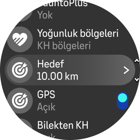Seçtiğiniz spor modunda seçenek olarak hedefler varsa kaydı başlatmadan önce ekranı yukarı kaydırarak veya crown düğmesini çevirerek bunları ayarlayabilirsiniz.