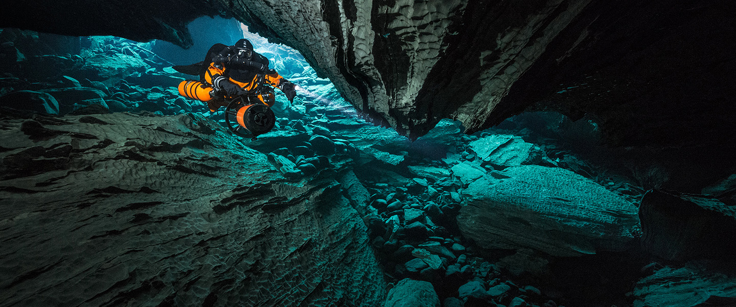 “With water temperatures hitting 0° C diving conditions were tough,” Andy says. "Mix in dives to almost 100 m with kilometres of underground scootering carrying torches and cameras and you begin to realise this was a team effort where every individual is top of their game. It’s an environment most people would never choose to go, let alone make a film in. But the people made it possible.”