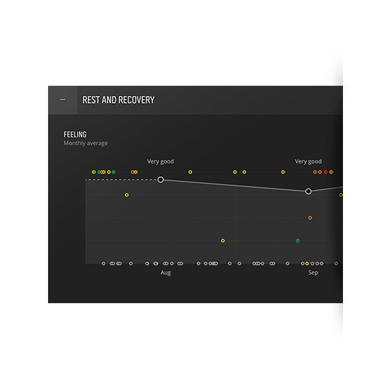 To provide you a 360° view to your training data, a feeling trend supplements the training load and rest & recovery data. By recording on Suunto Movescount how you feel after each training session and following how that changes over time, you get an additional indicator of your physical condition. For instance, if your feeling trend starts to decline, even though your training load has not increased, it may be a sign you need to take a break.