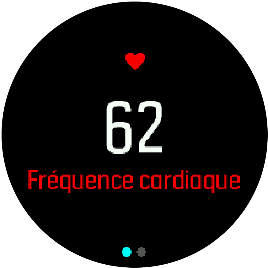 Depuis la vue du cadran de montre, appuyez sur le bouton inférieur droit pour accéder à l'affichage de la FC instantanée.