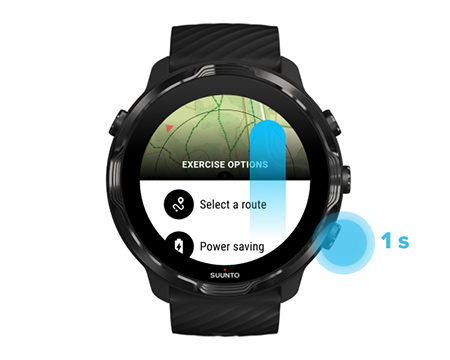 Lorsque vous enregistrez une séance d'exercice, Suunto 7 met à jour vos informations de géolocalisation toutes les secondes. Pour économiser la batterie, vous pouvez modifier la précision du GPS avant ou pendant votre séance d'exercice.