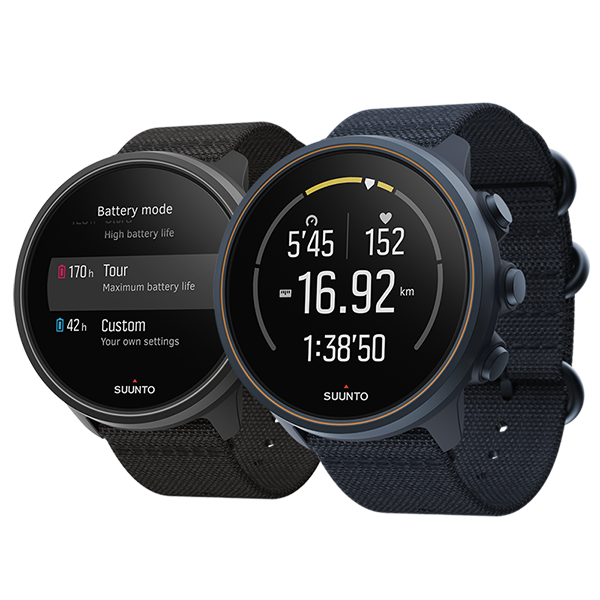 세 가지 미리 정의된 배터리 모드(퍼포먼스, 엔듀어런스 및 울트라)는 GPS 추적을 켠 상태에서 25시간부터 최대 120시간의 기록 시간을 제공합나다. Suunto 9은 활동 기록을 기반으로 스마트한 리마인더를 사용하여 다음 출전을 위해 충분히 충전되어 있는지 확인할 수 있도록 합니다. 시계가 운동하는 동안 배터리가 부족해지고 있음을 알아차리는 경우 자동으로 다른 배터리 모드로의 변경을 제안합니다.